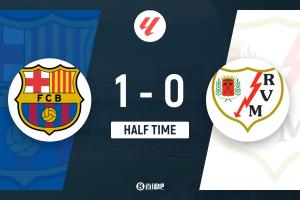 上半場補(bǔ)時3分鐘,巴薩1-0巴列卡諾。