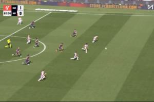 比賽第83分鐘,巴列卡諾反越位戰(zhàn)術(shù)打成,埃斯皮諾得球,此時(shí)巴列卡諾4人直面巴薩門將霍安·加西亞,但最終埃斯皮諾的射門打高了。