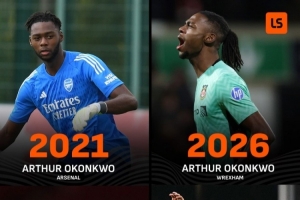 點球大戰(zhàn)中,雷克瑟姆門將奧孔科沃撲出哈欽森點球,幫助球隊淘汰諾丁漢森林,值得一提的是,兩人都效力過阿森納,曾經(jīng)做過隊友。