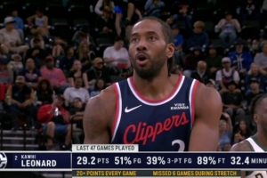 快船主場迎戰(zhàn)雄鹿,轉(zhuǎn)播方曬倫納德數(shù)據(jù):