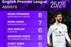 體育資訊1月10日訊 數(shù)據(jù)機構(gòu)squawka統(tǒng)計了本賽季英超助攻情況,B費居首。