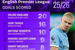 體育資訊1月10日訊 數(shù)據(jù)機(jī)構(gòu)squawka統(tǒng)計(jì)了本賽季英超進(jìn)球情況,哈蘭德壓伊戈?duì)枴さ賮喐昃邮住?/p>