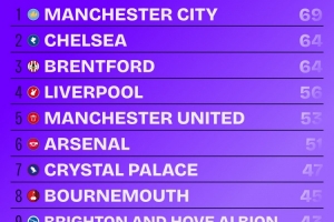 本賽季英超球隊運(yùn)動戰(zhàn)創(chuàng)造重大機(jī)會榜:曼城69次居首,阿森納51次