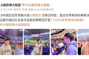 MLB美職棒官博今日更新,曬出樊振東現(xiàn)身邁阿密觀戰(zhàn)比賽的照片,美職棒官博配文寫道:“MLB中國區(qū)冠軍榮耀大使樊振東空降邁阿密,直擊世界棒球經(jīng)典賽決賽現(xiàn)場!見證委內(nèi)瑞拉隊(duì)史首次加冕經(jīng)典賽冠軍!”
