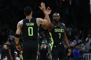 此役,塔圖姆出戰(zhàn)35分鐘12投5中,三分6中3、罰球6中6砍下19分12籃板7助攻3搶斷1蓋帽;杰倫·布朗出戰(zhàn)39分鐘17投9中,三分3中1,罰球14中12砍下31分8籃板8助攻2搶斷。