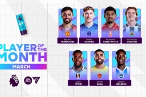 體育資訊3月26日訊 今日,英超聯(lián)賽官方公布了3月最佳球員候選,B費(fèi)、拉亞、維爾貝克、安東尼·戈登等7將入選。