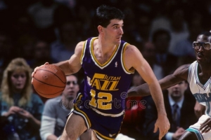 斯托克頓1962年3月26日出生于華盛頓州斯波坎,1984年NBA選秀,猶他爵士隊(duì)在首輪第16順位選中了他。斯托克頓的生涯全部效力于猶他爵士隊(duì)(1984-2003),共出戰(zhàn)1504場比賽,場均貢獻(xiàn)13.1分2.7籃板10.5助攻2.2搶斷,投籃命中率51.5%,三分命中率38.4%,罰球命中率82.6%,10次入選全明星(1989-1997,2000),并于1993年與卡爾·馬龍共享全明星MVP。