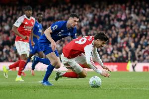 在3月14日槍手主場2-0戰(zhàn)勝埃弗頓的第24分鐘,哈弗茨在邁克爾·基恩的接觸下倒地。主裁判安迪·馬德利允許比賽繼續(xù)進行,而VAR裁判斯圖亞特·阿特維爾認為接觸“極其輕微”。但回放顯示,埃弗頓后衛(wèi)無意中踩到了哈弗茨的腳。