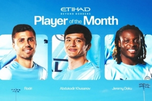 曼城公布3月份最佳球員候選:羅德里、胡桑諾夫和多庫(kù)