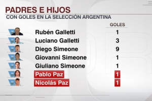據(jù)ESPN統(tǒng)計(jì),巴勃羅·帕斯和尼科·帕斯成為第三對(duì)為阿根廷國(guó)家隊(duì)破門(mén)的父子,此前加萊蒂父子、西蒙尼父子做到這點(diǎn)。