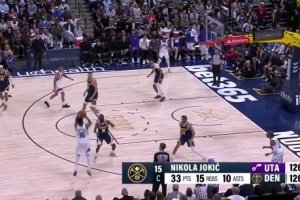 比賽進行到關(guān)鍵時刻,掘金球星約基奇助攻卡梅隆·約翰遜命中底角三分球終于追平比分,同時自己的數(shù)據(jù)來到33分15籃板10助攻的三雙。