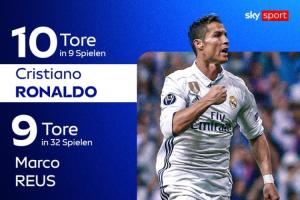 足壇攻破諾伊爾球門次數(shù)榜:C羅9場10球居首,羅伊斯32場9球第二