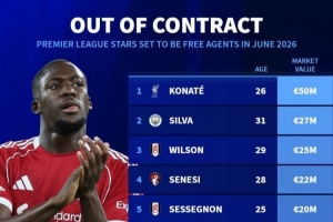 合同今夏到期英超球員身價(jià)排名: