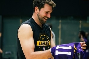 今天湖人球員們都沒有穿著各自號(hào)碼的訓(xùn)練服,而是都穿上了隊(duì)友的號(hào)碼。東契奇穿上了海斯的11號(hào),詹姆斯穿了德魯·蒂米的17號(hào),肯納德穿了東契奇的77號(hào),布朗尼穿的則是拉拉維亞的12號(hào)等等。