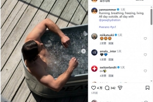 體育資訊3月30日訊 國米門將索默更新社媒動態(tài),曬出在瑞士泡冰浴的照片。