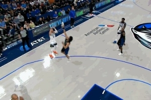 精準制導(dǎo)!詹姆斯轉(zhuǎn)身送長傳 拉拉維亞接球反擊單臂飛扣