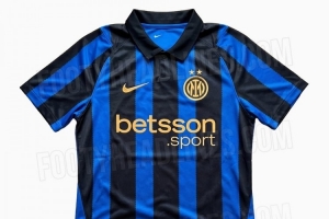 國米新賽季主場球衣諜照:polo領(lǐng)+鋸齒狀藍黑條紋+深黃色隊徽