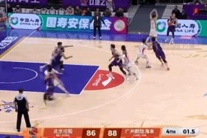 比賽最后時刻,外援威金頓籃下打進一球,讓廣州取得2分領(lǐng)先優(yōu)勢(88-86)。