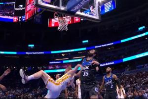 比賽末節(jié),比塔澤在防守中從身后一把拉下空中的蘭代爾,致其膝蓋著。