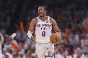 雷霆二當(dāng)家杰倫·威廉姆斯上半場表現(xiàn)全面,進(jìn)攻端手感也不錯,不過他在第二節(jié)一次突破中受傷離場。