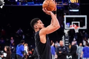 體育資訊1月18日訊 今天太陽客場對陣尼克斯,布克也特地選擇了一雙和紐約有著關(guān)聯(lián)的一個配色。
