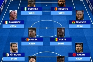 中場:Y·迪奧曼德(科特迪瓦、萊比錫、7500萬歐)、巴萊巴(喀麥隆、布萊頓、5500萬歐、無緣世界杯)、帕佩·蓋耶(塞內(nèi)加爾、比利亞雷亞爾、4000萬歐)、塞梅尼奧(加納、曼城、7500萬歐)
