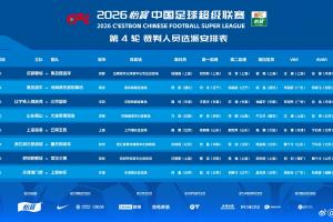 體育資訊04月03日訊 中國(guó)足協(xié)公布中超第4輪裁判安排,本輪中超裁判仍無麥麥提江和唐順齊。