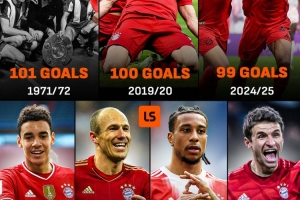 拜仁隊(duì)史單賽季德甲進(jìn)球數(shù)紀(jì)錄是1971-72賽季,那個(gè)賽季德甲豪門打進(jìn)了101球,2019-20賽季,他們打進(jìn)100球險(xiǎn)些追平該紀(jì)錄。在聯(lián)賽還是7輪的情況下,拜仁只需打進(jìn)5球就可創(chuàng)造新的紀(jì)錄。
