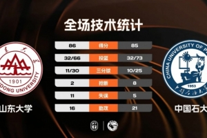末節(jié)比賽,雙方依舊是打得難解難分,中國石大半節(jié)時(shí)間僅拿到4分被山東大學(xué)追上并反超,比賽懸念打到了最后,關(guān)鍵時(shí)刻廉舒予命中準(zhǔn)絕殺三分球反超,中國石大最后一球直接失誤錯(cuò)失機(jī)會(huì),最終山東大學(xué)86-85險(xiǎn)勝中國石大。