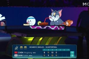 體育資訊04月04日訊 中國澳門乒乓世界杯女單1/4決賽,陳幸同對陣韓國選手申裕斌。