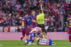 直紅改黃!馬競1-2巴薩裁判錄音:馬丁先踢到球后踩踏 是正常動作