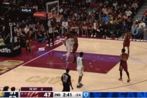 這干啥呢?里德反擊幾乎空籃機(jī)會(huì) 起飛想要扣籃被籃筐帽