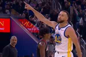 GIF-庫(kù)里標(biāo)志性超遠(yuǎn)三分拆炸彈
