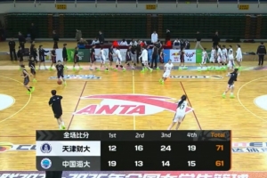 末節(jié)決戰(zhàn),李依坤上來帶領(lǐng)中國海大咬住比分,隨后中國海大連續(xù)失誤,陳雨欣繼續(xù)內(nèi)線取分,夏榮三分再中,天津財大9-0再次領(lǐng)先到雙位數(shù)領(lǐng)先,張榮荷雖然三罰全中再追分,但時間所剩無幾,最終天津財大71-61力克中國海大。