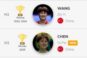 世界羽聯(lián)官網(wǎng)顯示:陳雨菲、蔣振邦/魏雅欣組合退出亞錦賽