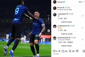 他也在賽后通過社媒曬出自己和勞塔羅的慶祝合照,并配文:“藍(lán)黑人生?!?/p>
