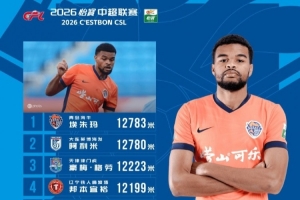 中超第4輪跑動(dòng)榜:海牛外援埃朱馬連續(xù)登頂,阿利米3米之差隨后
