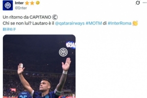 他也在今日被俱樂部官方評選為本場比賽的隊內(nèi)MVP。國米官方也點評道:“隊長回歸!除了他還能是誰呢?勞塔羅當選國米vs羅馬的隊內(nèi)MVP?!?/p>