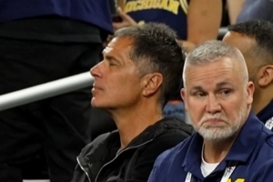 湖人總裁兼總經(jīng)理佩林卡現(xiàn)場觀戰(zhàn)NCAA決賽,給母校密歇根加油。