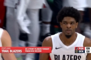 開拓者球員亨德森飆中三分,命中球隊(duì)本場(chǎng)第25記三分,也是開拓者的球隊(duì)新高。