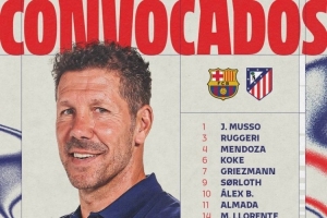 馬競歐冠戰(zhàn)巴薩名單:格列茲曼阿爾瓦雷斯在列,奧布拉克等人缺席