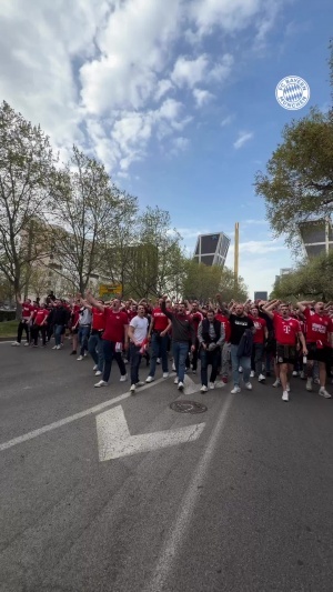 體育資訊04月08日訊 歐冠8強(qiáng)首回合,拜仁客戰(zhàn)皇馬,賽前拜仁官方曬出了球迷遠(yuǎn)征軍朝伯納烏前進(jìn)的視頻。
