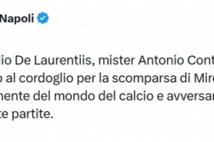 “那不勒斯足球俱樂部主席奧雷利奧·德·勞倫蒂斯、教練安東尼奧·孔蒂以及全體那不勒斯隊隊員共同哀悼米爾恰·盧切斯庫的逝世,他是足球界一位杰出的人物,也是許多比賽中一位忠誠而值得尊敬的對手?!?/p>