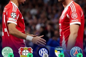拜仁近9場歐冠客場戰(zhàn)績7勝1平1負(fù),只輸給過阿森納