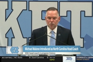 體育資訊4月8日訊 今天,邁克·馬龍作為新任主帥參加了北卡大學(xué)的新聞發(fā)布會。