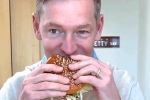面對網(wǎng)友調(diào)侃他吃漢堡像在“受刑”,Kempczinski 解釋那只是童年習(xí)慣。“我媽家教很嚴(yán),從小就教育我:嘴里有東西的時候不要說話。”他坦言,“視頻里我確實該豁出去了,嘴里塞滿東西也要說話?!?/p>