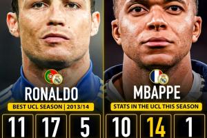 姆巴佩本賽季歐冠出戰(zhàn)10場(chǎng)比賽已經(jīng)打進(jìn)14球,高居射手榜第一。而在歐冠單賽季總進(jìn)球排行榜上,姆巴佩距離C羅在2013/14賽季的17球紀(jì)錄還有3球之差。