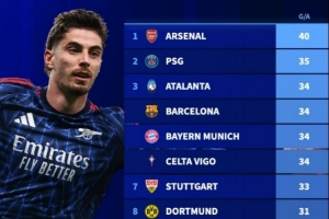體育資訊4月8日訊 在歐冠淘汰賽首回合阿森納1-0擊敗葡體的比賽中,兩位替補(bǔ)登場的球員連線,馬丁內(nèi)利助攻哈弗茨破門。德轉(zhuǎn)也盤點(diǎn)了本賽季五大聯(lián)賽球隊(duì)在各項(xiàng)賽事由替補(bǔ)球員參與進(jìn)球榜,具體如下: