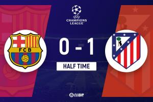 半場(chǎng)結(jié)束,馬競(jìng)暫1-0巴薩。