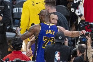 若一切順利,詹姆斯和庫里將迎來第28次常規(guī)賽交手。此前27次,詹姆斯14勝13負(fù)稍稍占優(yōu)。